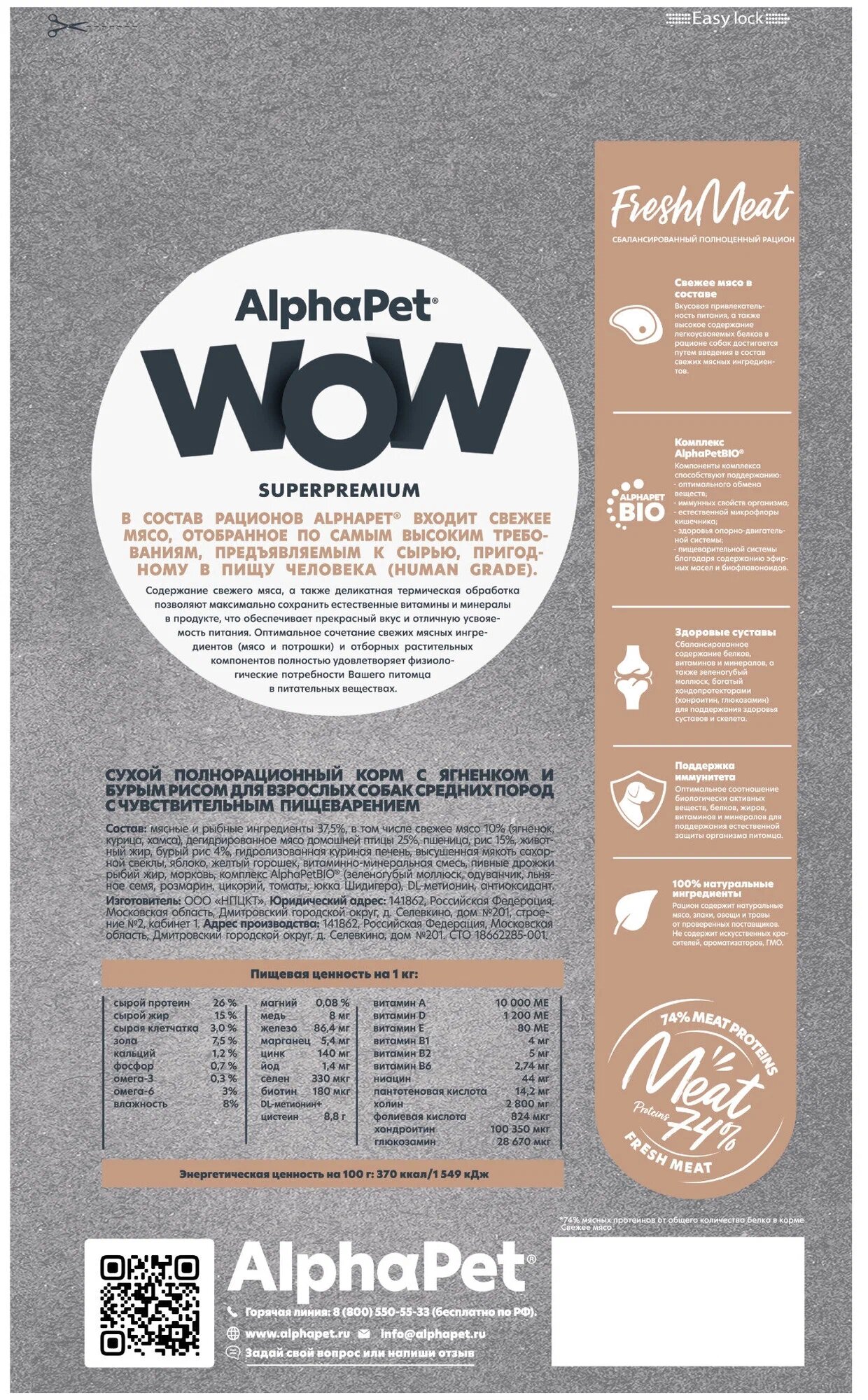AlphaPet WOW Superpremium сухой полнорационный корм для взрослых собак средних пород с чувствительным пищеварением с ягненком и бурым рисом — 2 кг: сравнение цен, характеристики, фото, актуальное наличие и цены.