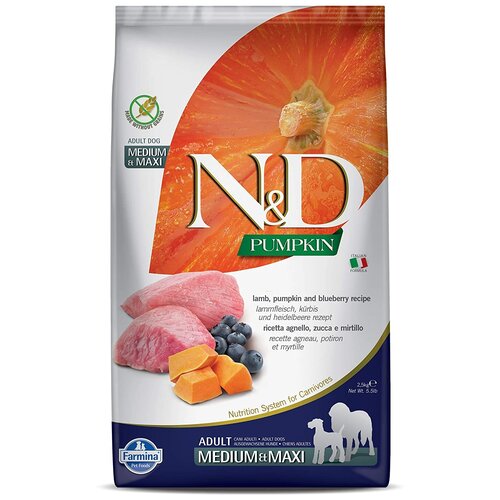 FARMINA N&D Pumpkin Adult Medium&Maxi полноценный сбалансированный беззерновой корм для взрослых собак средних и крупных пород с ягненком, тыквой и черникой