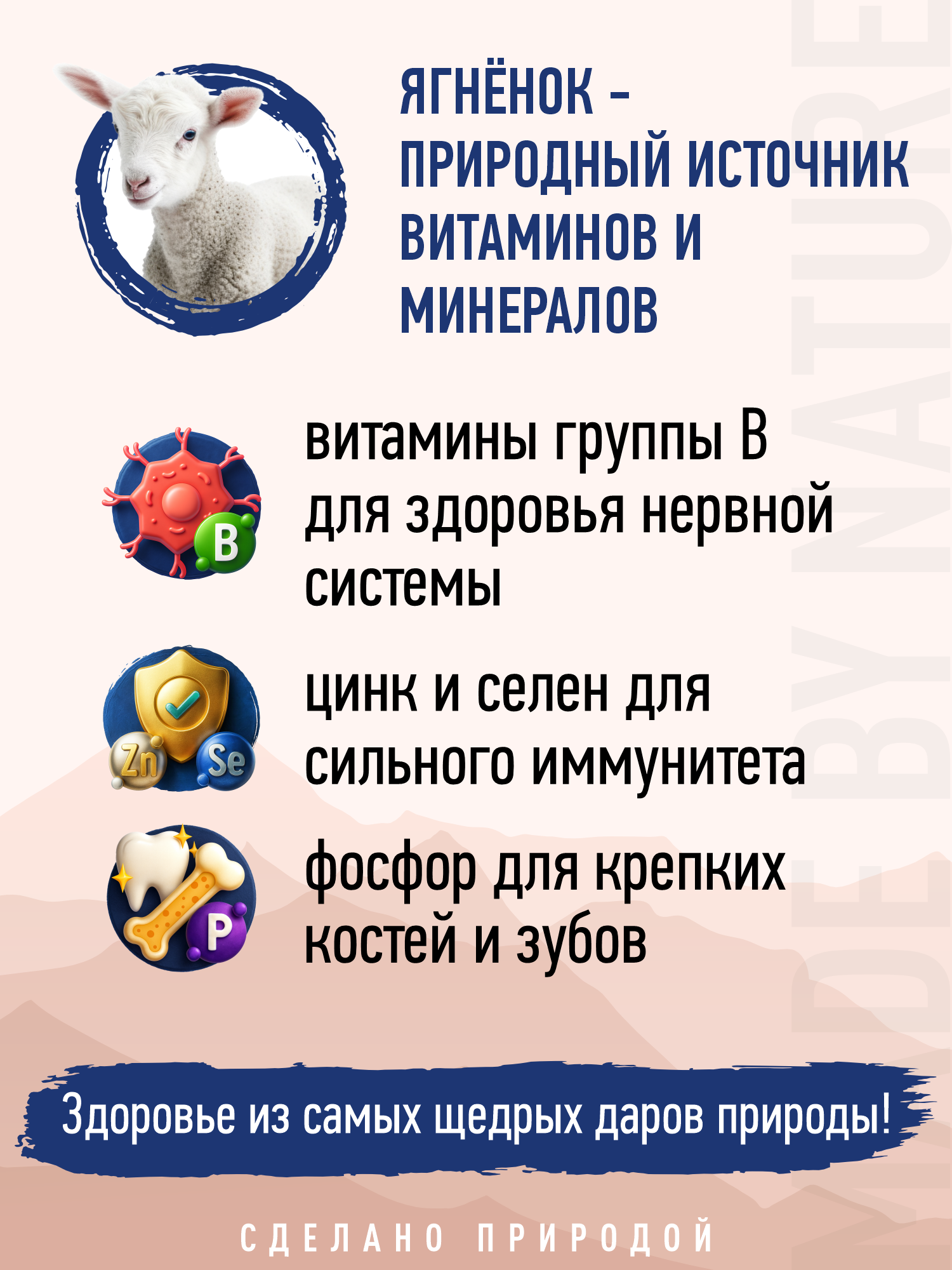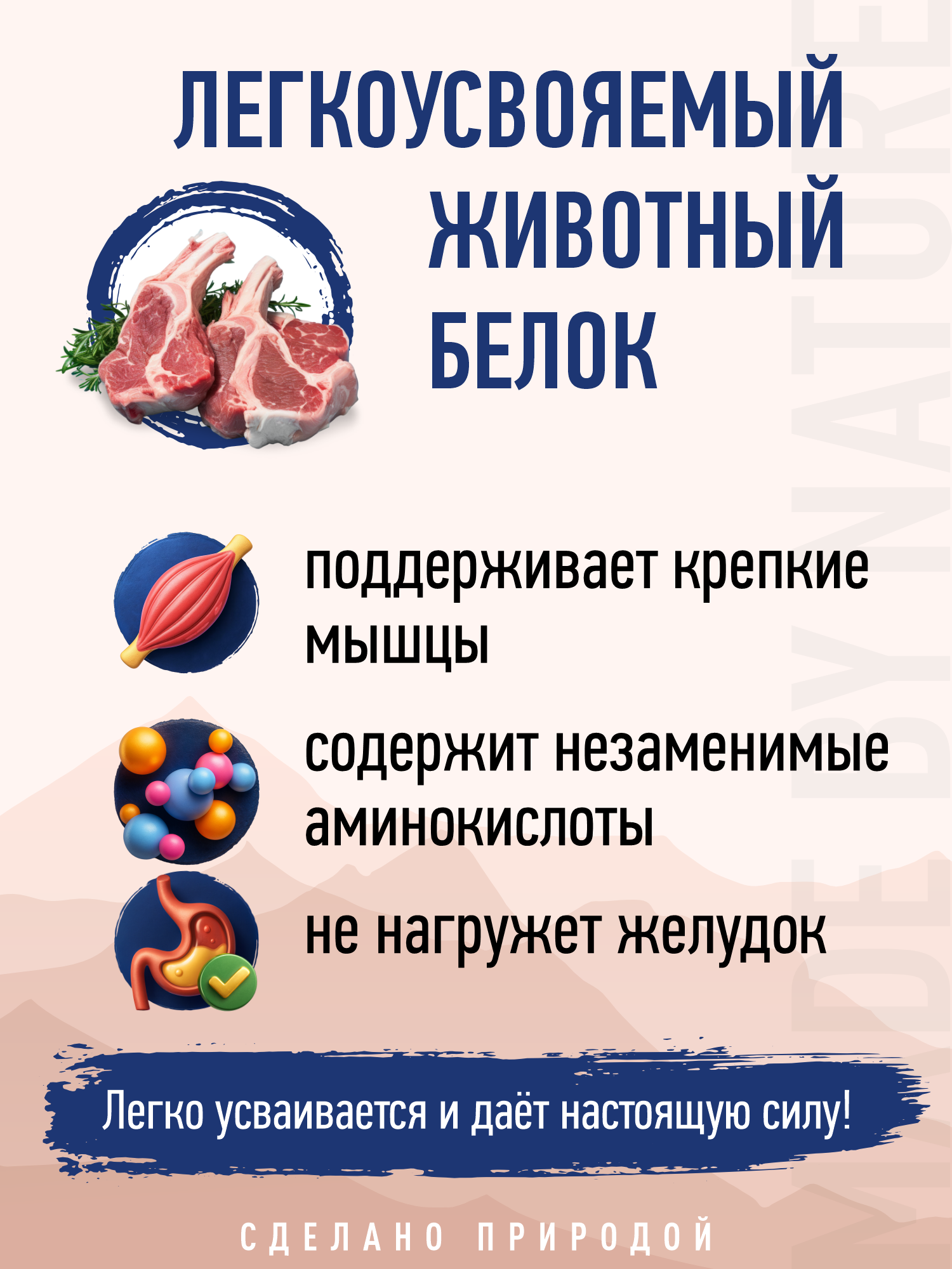 мясных ингредиентов (более 65%). Высокоусвояемые животные белки, в том числе оленина, лосось, ягненок, индейка и утка, помогают поддерживать правильную работу мышц и иммунной системы, обеспечивать здоровую кожу и блестящую шерсть.