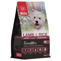 Корм для собак мелких пород BLITZ Adult Sensetive с ягненком и рисом, 1,8 кг. Полнорационный сухой корм суперпремиум класса специально создан для взрослых собак мелких пород с чувствительным пищеварением. Оптимальный размер гранул идеально подойдет для Вашего маленького питомца, а сбалансированный, легкоусвояемый состав корма удовлетворит все его жизненные потребности и обеспечит силой и выносливостью.