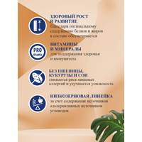 • Благодаря оптимальному содержанию белков и жиров в составе обеспечивается здоровый рост и развитие