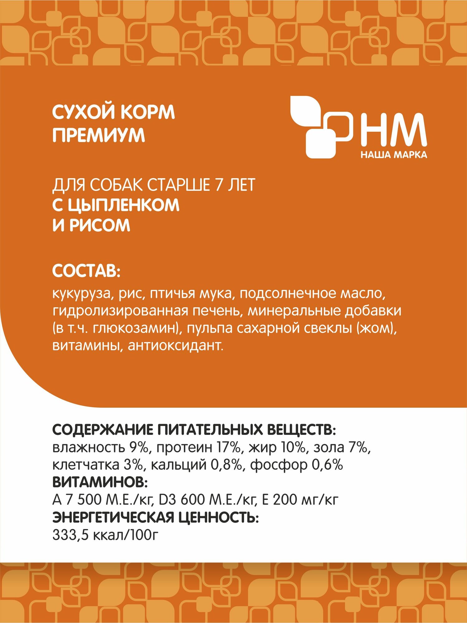 Купить Наша марка для пожилых собак всех пород старше 7 лет с цыпленком и рисом (15 кг) с доставкой по всей России.