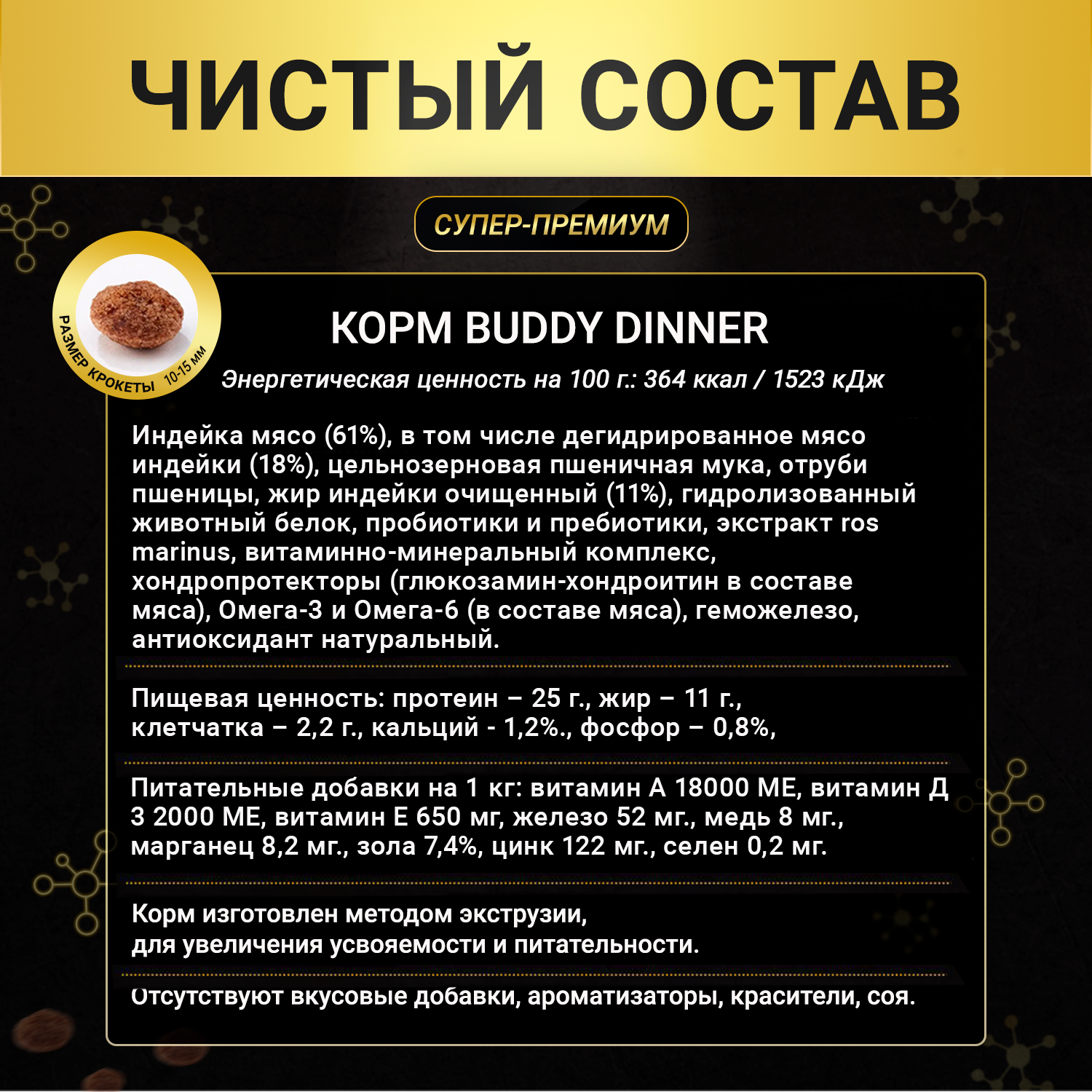 Корм для собак средних и крупных пород Buddy Dinner Gold Line Hypoallergenic с индейкой 3 кг + 1 кг в подарок: сравнение цен, характеристики, фото, актуальное наличие и цены.