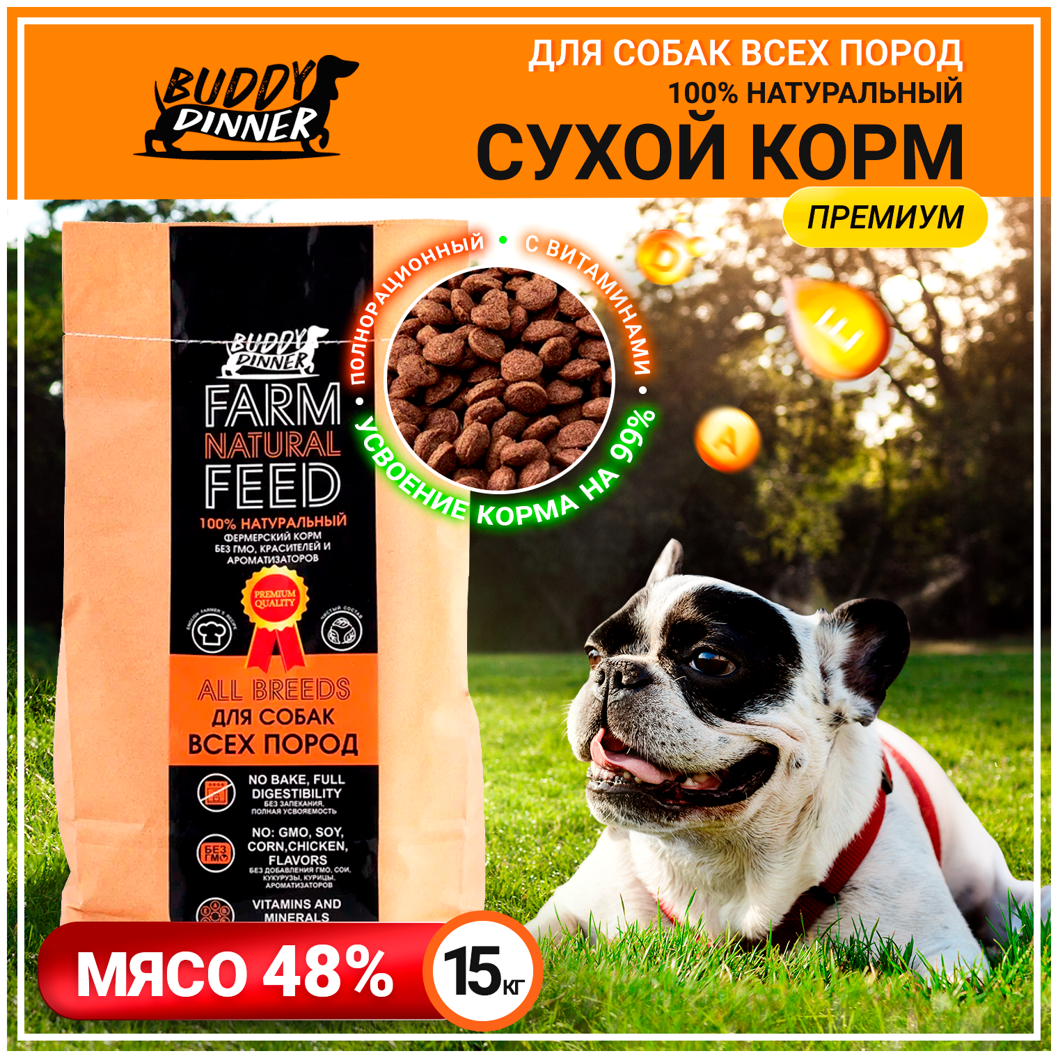 Корм для собак средних и крупных пород BUDDY DINNER premium класса ORANGE LINE Hypoallergenic, полнорационный, 100% натуральный состав, с говядиной,15 кг: сравнение цен, характеристики, фото, актуальное наличие и цены.