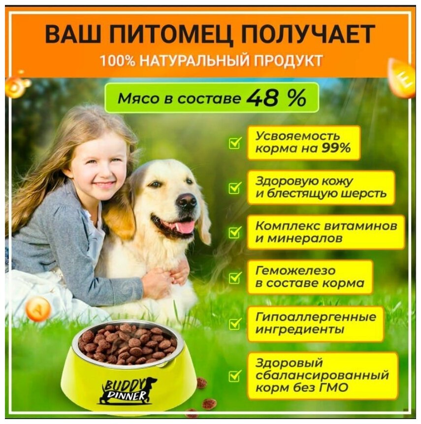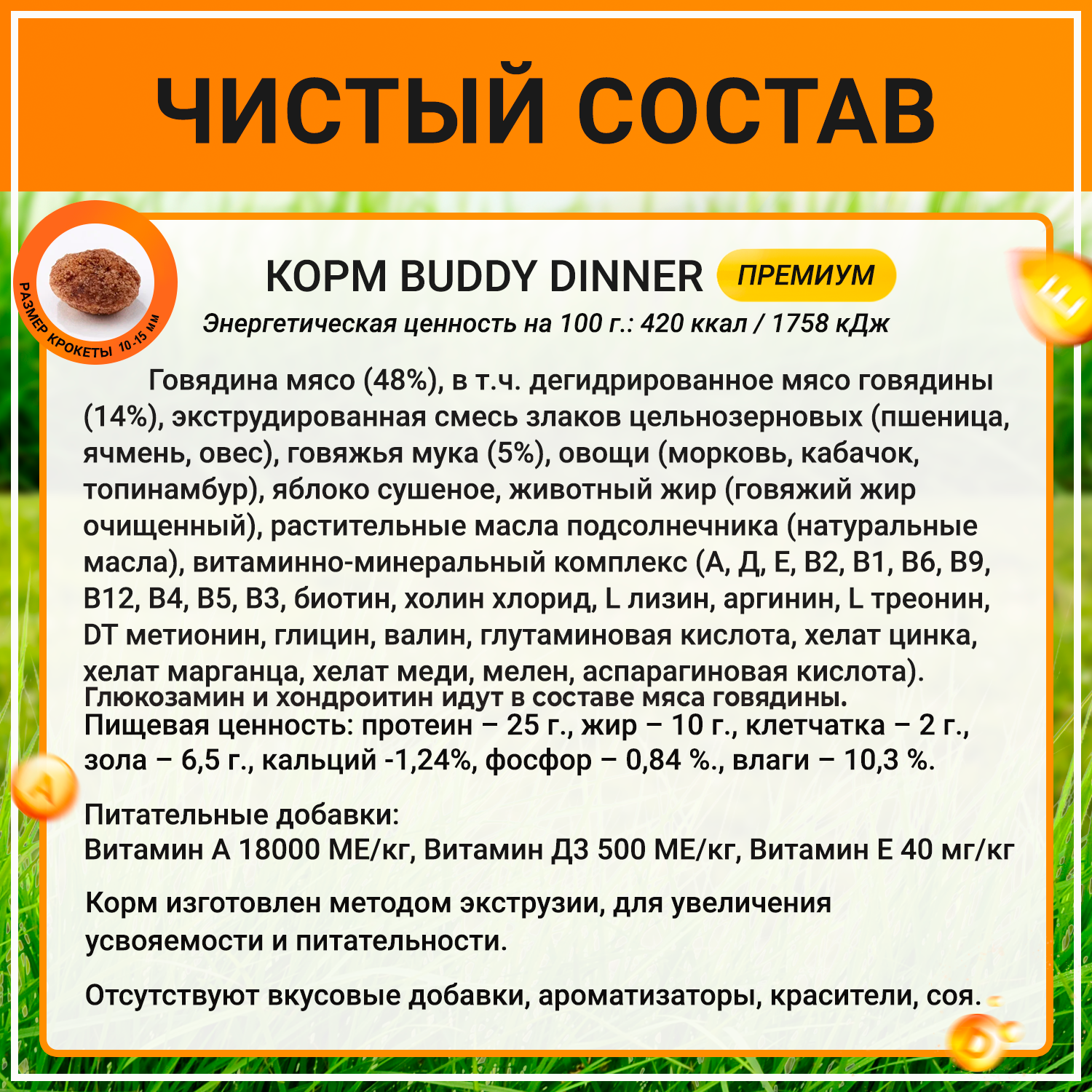 Корм для собак средних и крупных пород BUDDY DINNER premium класса ORANGE LINE Hypoallergenic, полнорационный, 100% натуральный состав, с говядиной, 3 кг: сравнение цен, характеристики, фото, актуальное наличие и цены.
