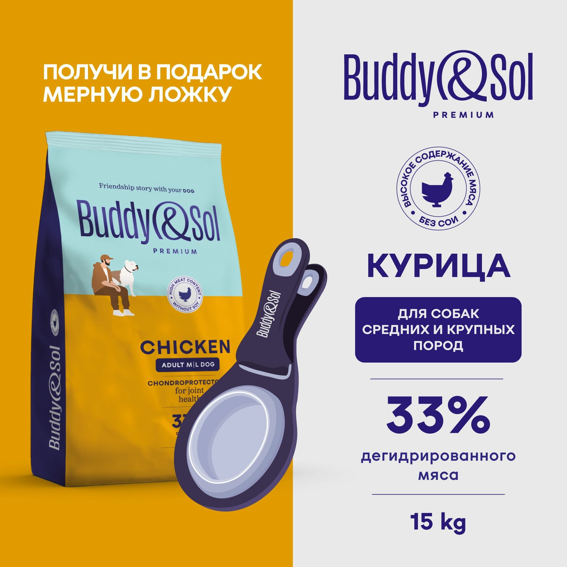 Выбирая сухой корм для собак Buddy&Sol, вы обеспечиваете своему питомцу здоровое и сбалансированное питание премиум-класса.