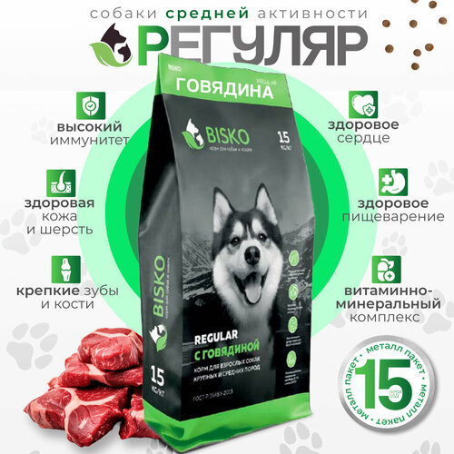 Корм для собак сухой 15 кг Биско Регуляр Говядина для крупных и средних пород. Металл пакет: сравнение цен, характеристики, фото, актуальное наличие и цены.