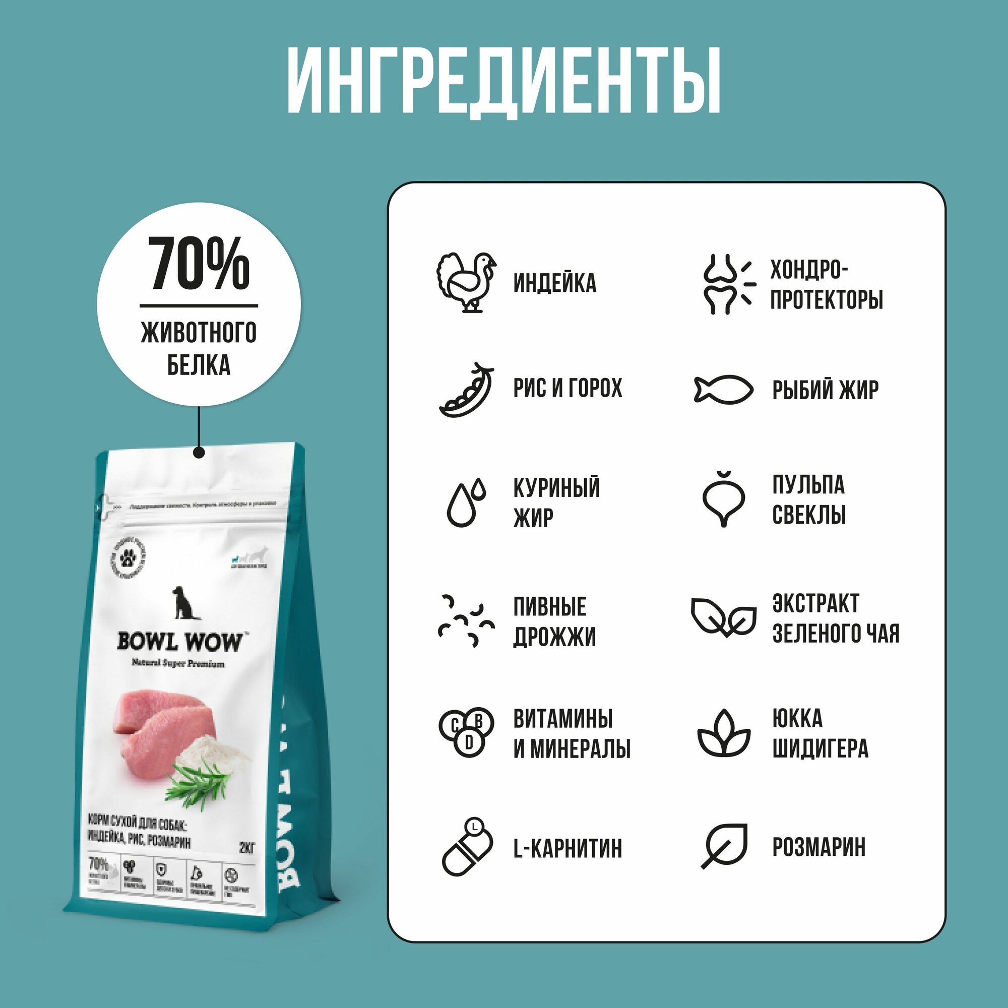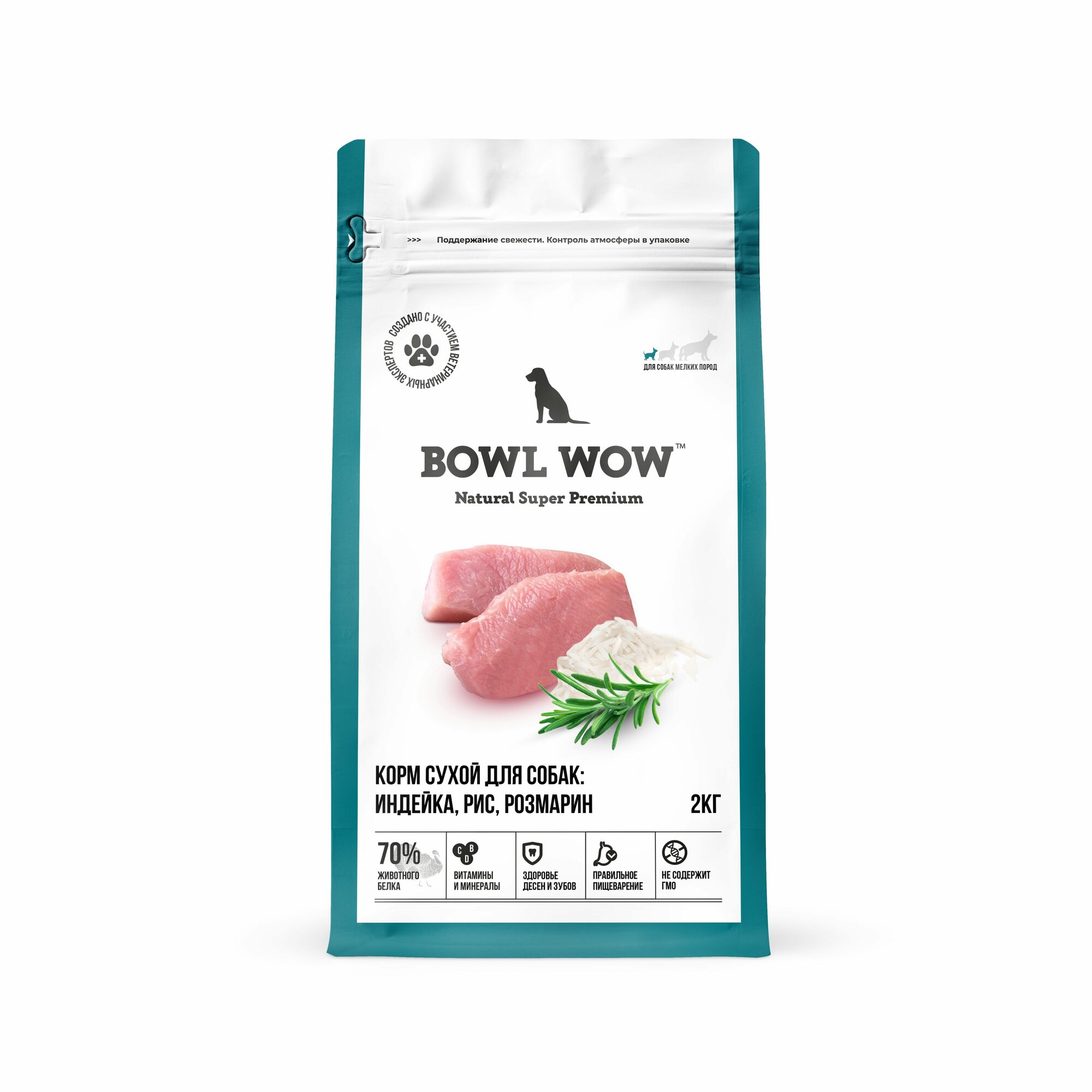 Корм для собак сухой BOWL WOW полнорационный для взрослых собак мелких пород с индейкой, рисом и добавлением розмарина 2кг.: сравнение цен, характеристики, фото, актуальное наличие и цены.