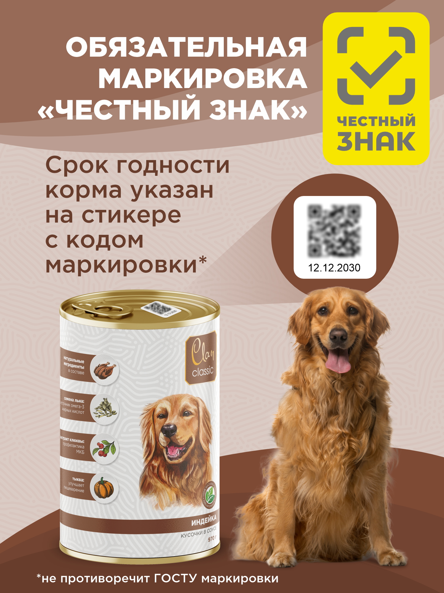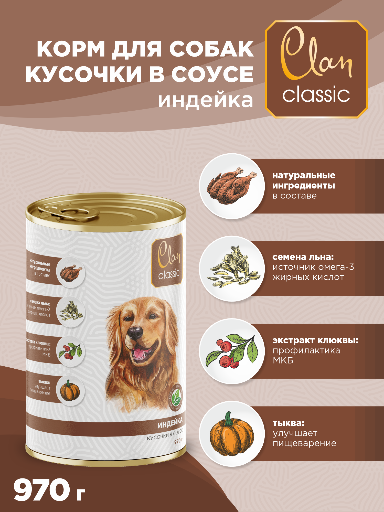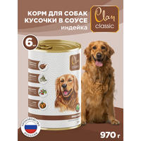 Купить Корм для собак влажный CLAN Classic Индейка, кусочки в соусе, ж/б 970г, 6 шт. с доставкой по всей России.