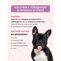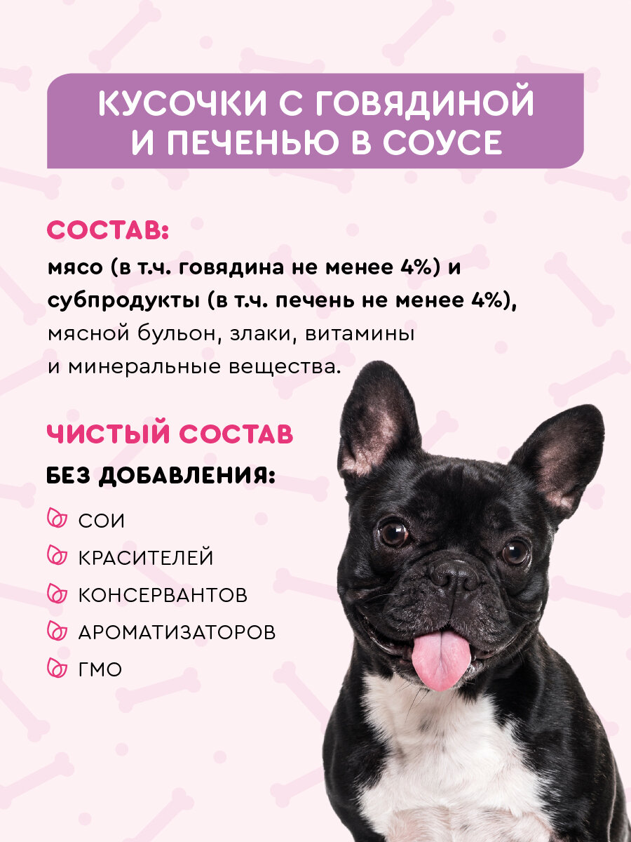 - Корм для собак влажный с высоким содержанием натуральной говядины и печени.