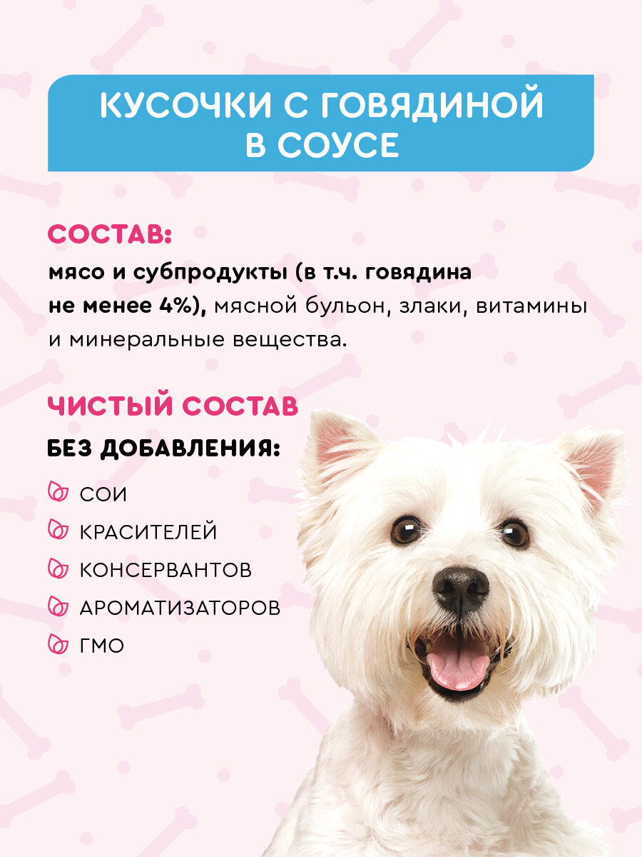Эти паучи для собак — идеальное решение для тех, кто заботится о здоровье своего питомца. Удобная упаковка паучей сохраняет свежесть и питательные свойства корма, делая его удобным для использования как дома, так и на прогулке. Также этот влажный корм для собак может использоваться как основной рацион или как вкусное лакомство для собак .