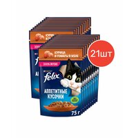 Купить Корм Felix Аппетитные кусочки с курицей и томатами в желе 75г 21 шт с доставкой по всей России. Корм Felix Аппетитные кусочки с курицей и томатами в желе 75г 21 шт: сравнение цен, характеристики, фото, актуальное наличие и цены.