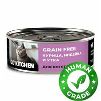 Купить GO’KITCHEN консервы беззерновые для котят и кошек с курицей, индейкой и уткой, 12шт по 100г Влажный корм с доставкой по всей России.