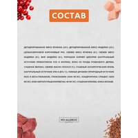 Состав: Дегидрированное мясо ягненка, Дегидрированное мясо индейки, Цельный белый рис, Свежее мясо ягненка, Свежее мясо индейки, Жир индейки, Экстракт цикория (естественный источник FOS и инулина), Мука из плода рожкового дерева, Сушеное яблоко, Сушеный Антарктический Криль (естественный источник EPA и DHA), Пивные дрожжи (естественный источник MOS), Таурин, Глюкозамин, Хондроитин, МСМ, (Метилсульфонилметан), Экстракт клюквы, Юкка Шидигера, Комплекс натуральных антиоксидантов (Экстракт Розмарина, Грейпфрута, Апельсина, Куркумы и Сизигиума). Сохранено витамином С, розмарином и смесью природных токоферолов (источник натурального витамина Е).