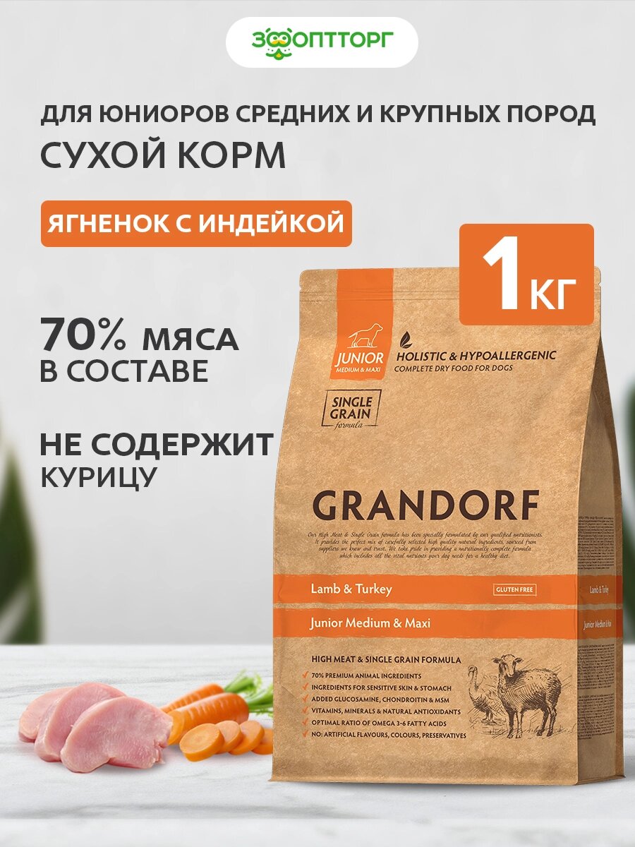 Сухой корм Grandorf Medium & Maxi Junior для юниоров средних и крупных пород Ягненок и индейка, 1 кг.: сравнение цен, характеристики, фото, актуальное наличие и цены.