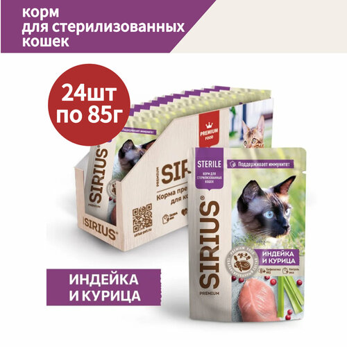 Купить Корм влажный для стерилизованных кошек. Кусочки в соусе «Индейка и курица » ТМ SIRIUS 85г*24шт. с доставкой по всей России. Корм влажный для стерилизованных кошек. Кусочки в соусе «Индейка и курица » ТМ SIRIUS 85г*24шт.: сравнение цен, характеристики, фото, актуальное наличие и цены.