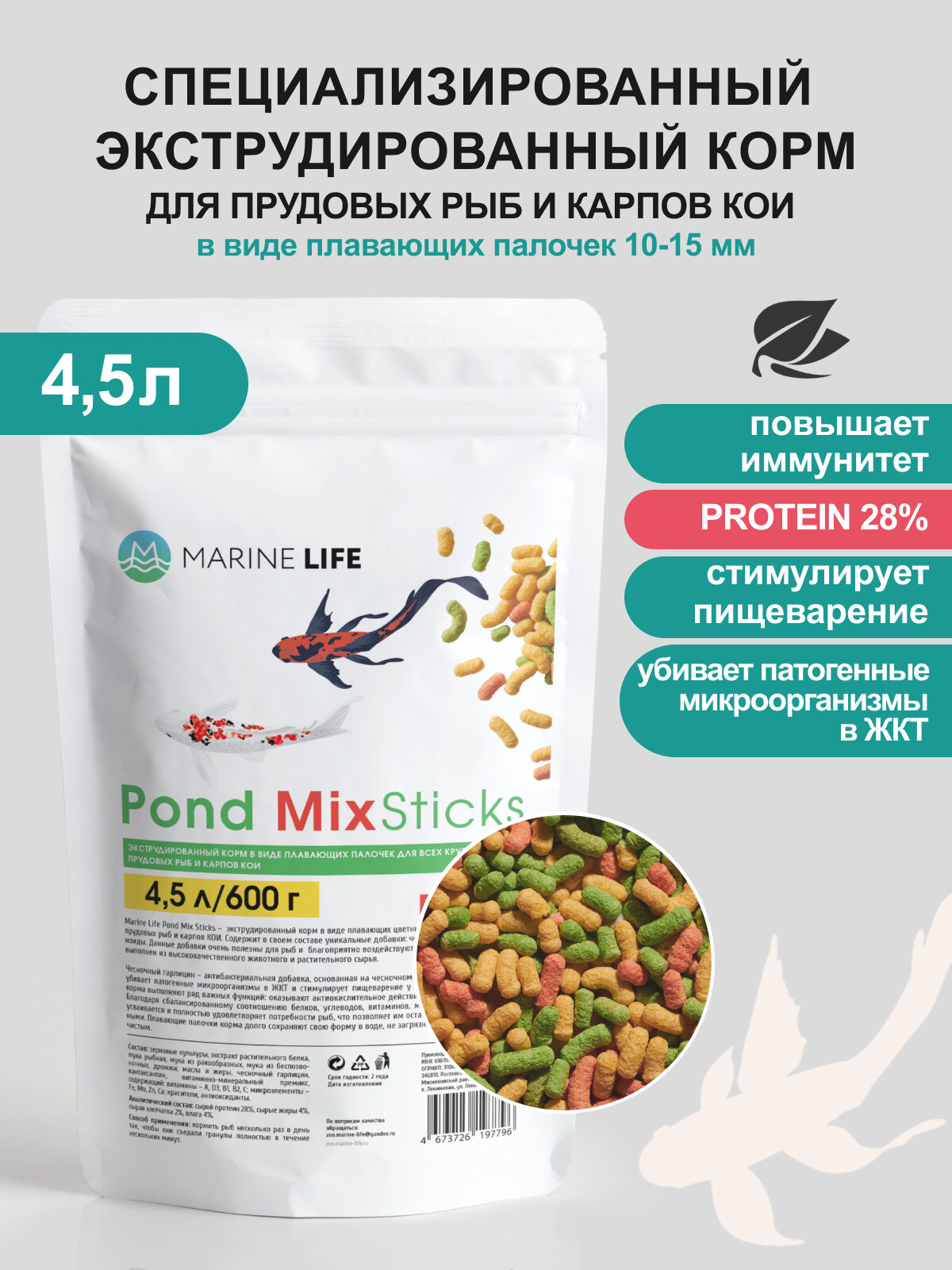 Корм Marine Life Pond MIX, для прудовых рыб, карпов, КОИ, плавающие палочки, 600г: сравнение цен, характеристики, фото, актуальное наличие и цены.