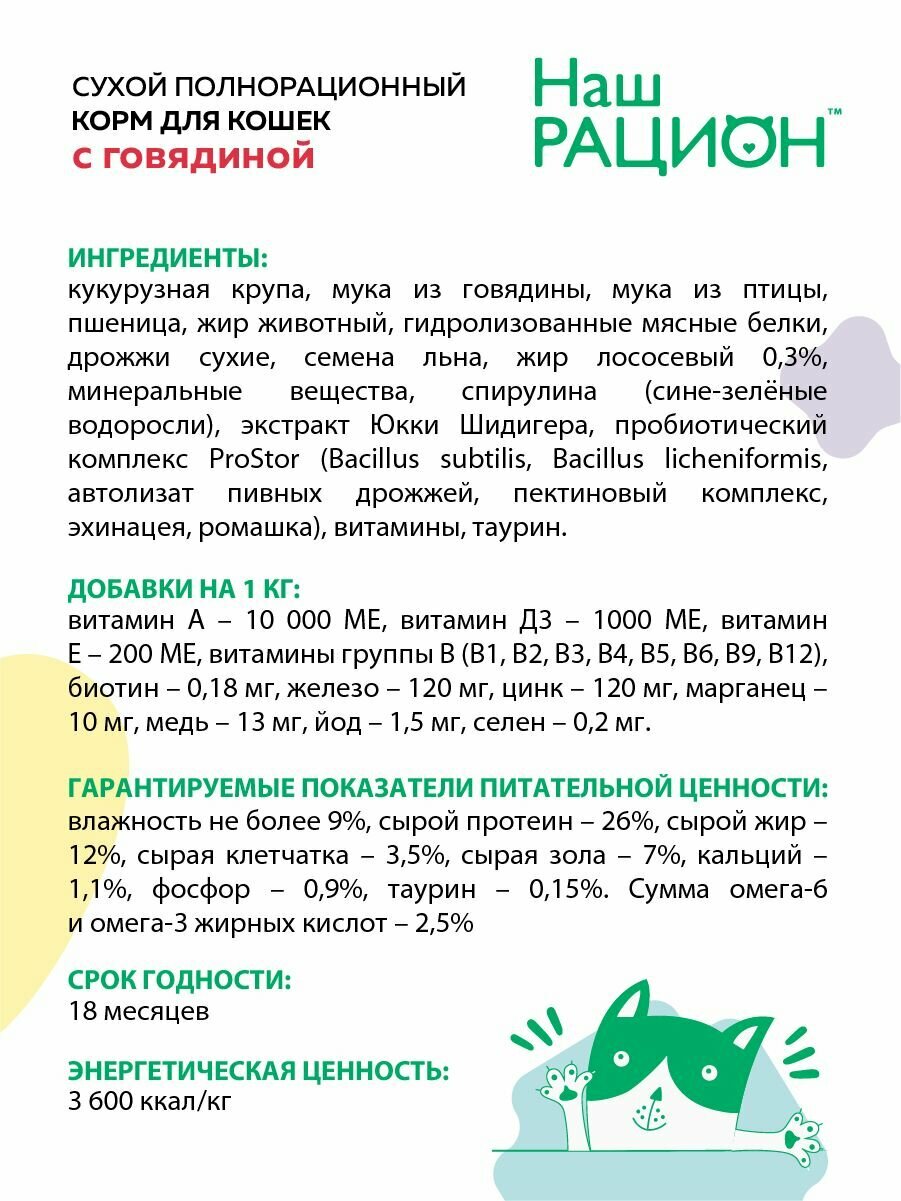 Купить Корм Наш Рацион сухой полнорационный для взрослых кошек с говядиной, 10кг с доставкой по всей России. Корм Наш Рацион сухой полнорационный для взрослых кошек с говядиной, 10кг: сравнение цен, характеристики, фото, актуальное наличие и цены.