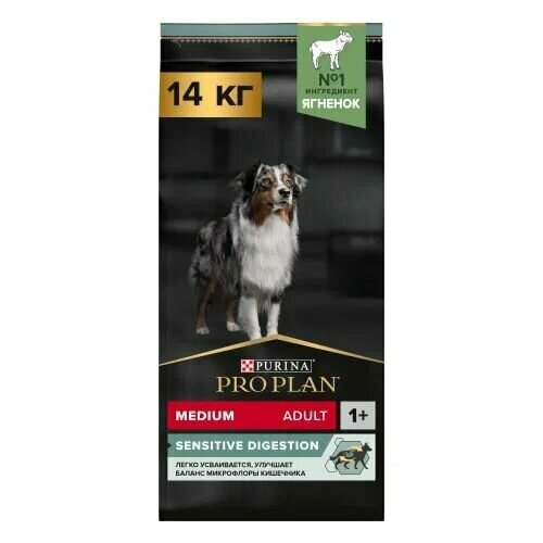 Чувствительное пищеварение - одна из самых часто встречающихся особенностей организма собак, когда они не могут нормально усваивать рацион, не вызывающий проблем у других животных. В результате неправильно подобранного питания у собак могут возникнуть проблемы пищеварения: нарушения работы желудочно-кишечного тракта, вздутие живота, диарея, метеоризм. Поэтому для питомцев с чувствительным пищеварением важно подобрать специальный корм, способствующий улучшению баланса микрофлоры кишечника, который легко усваивается и переваривается. Изучая потребности собак на протяжении многих лет, команда квалифицированных ветеринарных специалистов и диетологов PURINA разработала сухой корм PRO PLAN® Sensitive digestion - ежедневный рацион для взрослых собак средних пород с высоким содержанием ягненка. Этот полнорационный корм полностью сбалансирован по составу и помогает поддержать здоровое пищеварение. 1) Содержит пребиотики, способствующие росту бифидобактерий, улучшающих баланс микрофлоры кишечника. 2) Поддерживает здоровье кишечника и улучшает качество стула благодаря особым ингредиентам. 3) Помогает поддерживать здоровье суставов при активном образе жизни. Ингредиенты № 1 в рационах PRO PLAN® для собак — это всегда высококачественные кусочки ягненка, лосося, индейки, курицы и говядины, приготовленные с сохранением вкуса и важнейших питательных веществ. Все корма PRO PLAN разработаны на основе одних из самых современных научных достижений. Рационы PRO PLAN рекомендованы ветеринарными специалистами и заводчиками*. Московская ветеринарная академия им. К. И. Скрябина признает экспертизу группы компаний Нестле в области кормления домашних животных. Корм сухой для взрослых собак средних пород PRO PLAN® Sensitive digestion/ Для собак с чувствительным пищеварением — это полюбившийся PRO PLAN® Opti Digest с новым названием, но с прежним составом и качеством. Индивидуальную норму кормления собаки с учетом его возраста, размера и индивидуальных потребностей вы можете рассчитать в специальном калькуляторе. Для этого сканируйте QR-код на задней стороне упаковки. Если вы впервые переходите на корм PRO PLAN®, воспользуйтесь рекомендациями по переводу питомца на корм PRO PLAN в карточке товара. *На основании независимого исследования по оценке уровня рекомендаций в каналах ветеринарных специалистов и заводчиков от 04.2023, проведенного компанией IPSOS на территории РФ. Sensitive digestion - при чувствительном пищеварении.