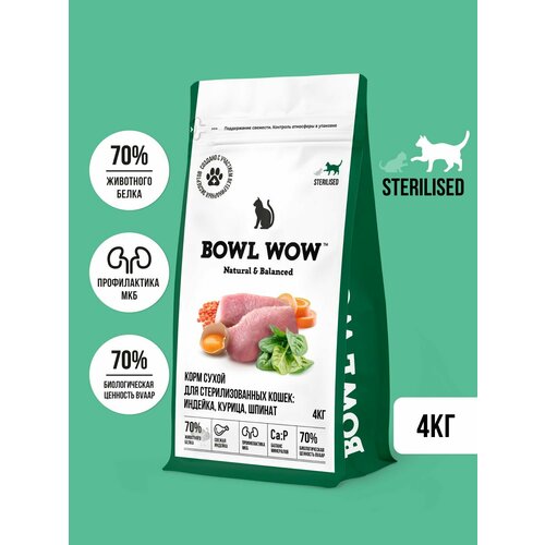 Купить Корм для стерилизованных кошек Bowl Wow 4кг с индейкой, курицей и шпинатом с доставкой по всей России. Корм для стерилизованных кошек Bowl Wow 4кг с индейкой, курицей и шпинатом: сравнение цен, характеристики, фото, актуальное наличие и цены.