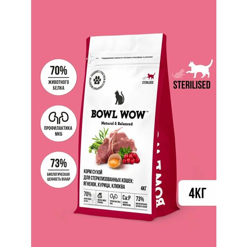 Купить Корм для стерилизованных кошек Bowl Wow 4кг с ягненком, курицей и клюквой с доставкой по всей России. Корм для стерилизованных кошек Bowl Wow 4кг с ягненком, курицей и клюквой: сравнение цен, характеристики, фото, актуальное наличие и цены.