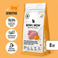 Купить BOWL WOW NATURAL SUPER PREMIUM SENSITIVE 8 кг сухой корм для взрослых кошек с чувствительным пищеварением индейка, курица, тыква с доставкой по всей России.