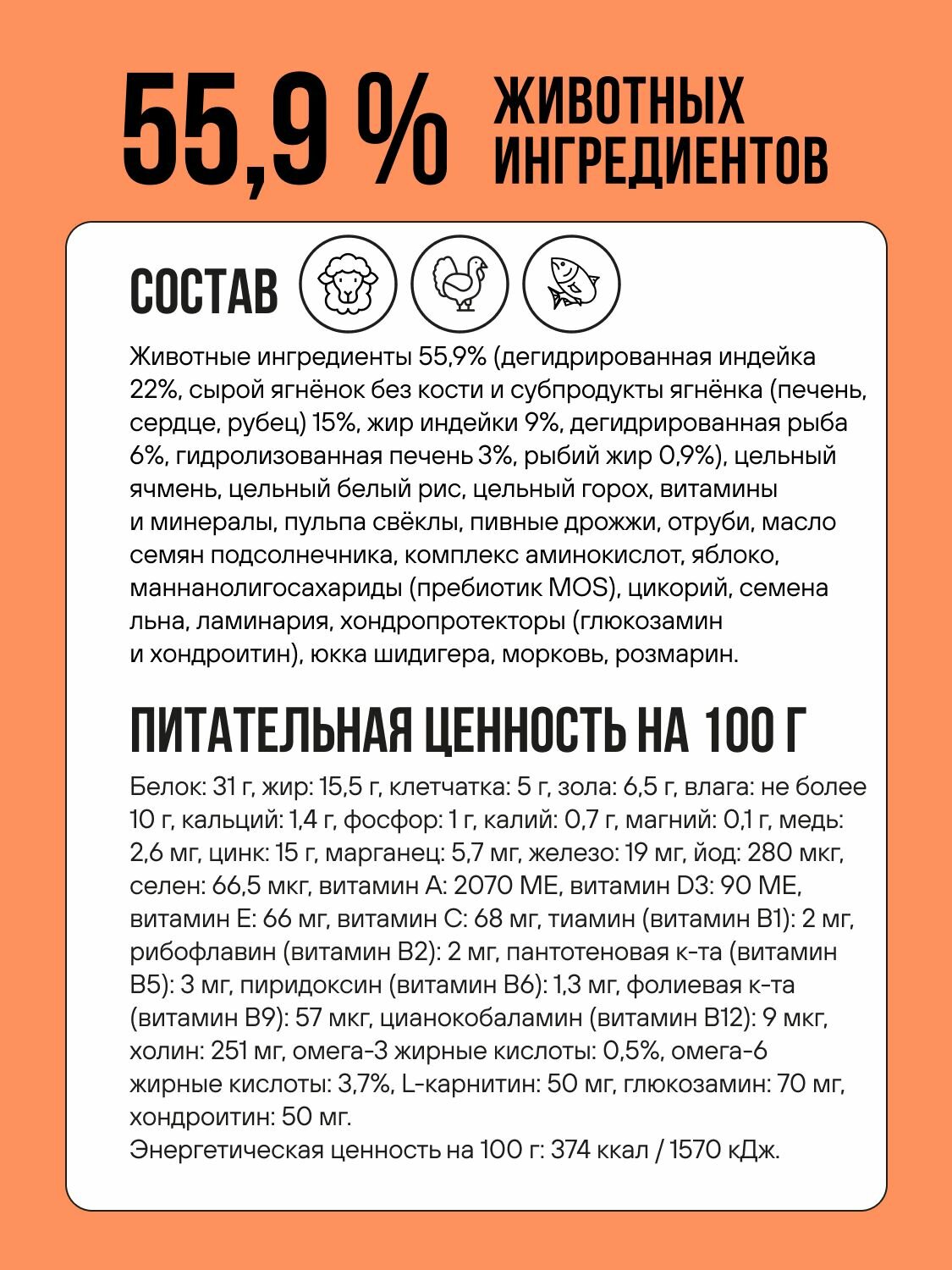 - Полноценный аминокислотный профиль для вашего питомца: высокая усваиваемость белка не менее 72% BVaap.