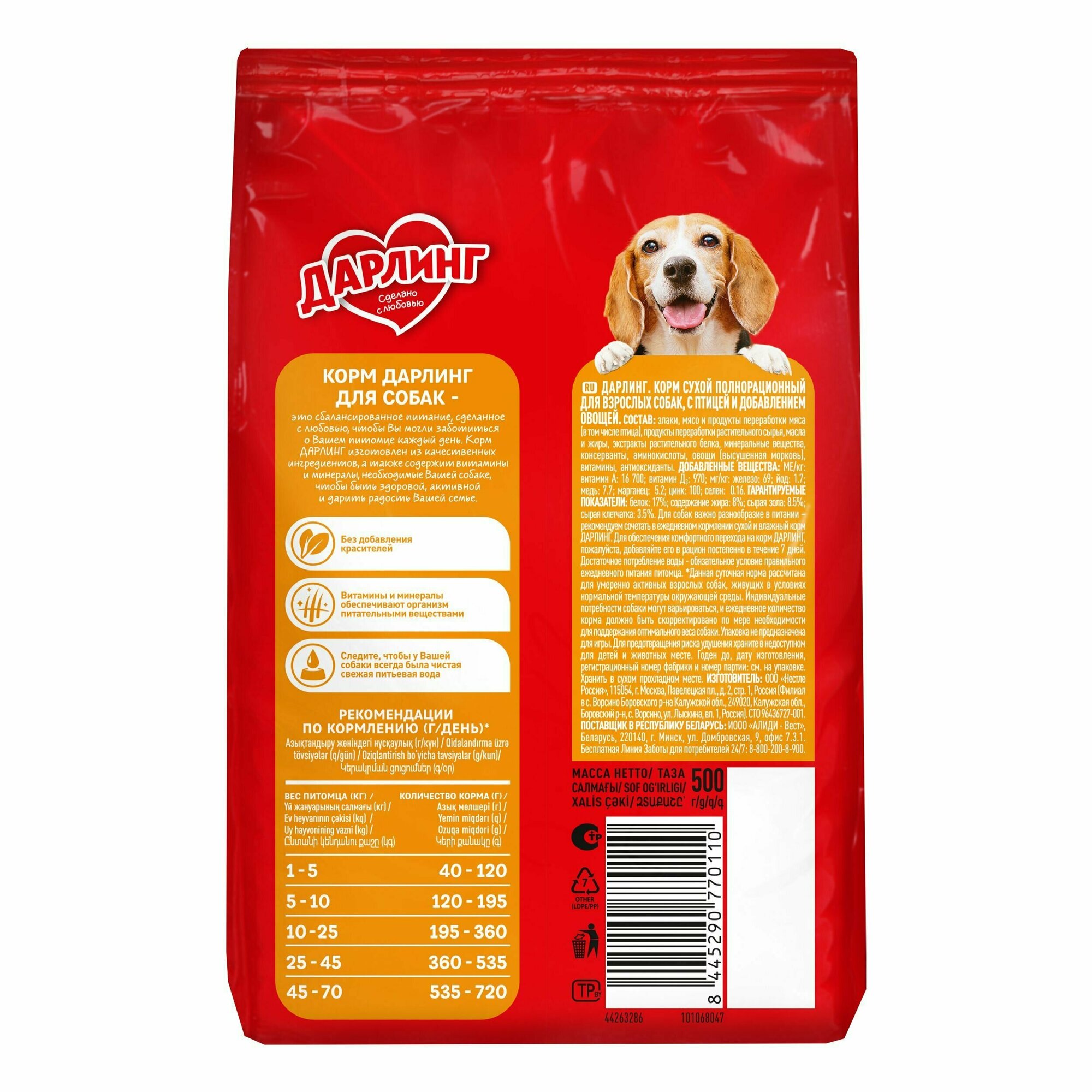 Купить Корм сухой, «Дарлинг», для взрослых собак, с птицей и овощами, 500г 6 шт с доставкой по всей России. Корм сухой, «Дарлинг», для взрослых собак, с птицей и овощами, 500г 6 шт: сравнение цен, характеристики, фото, актуальное наличие и цены.