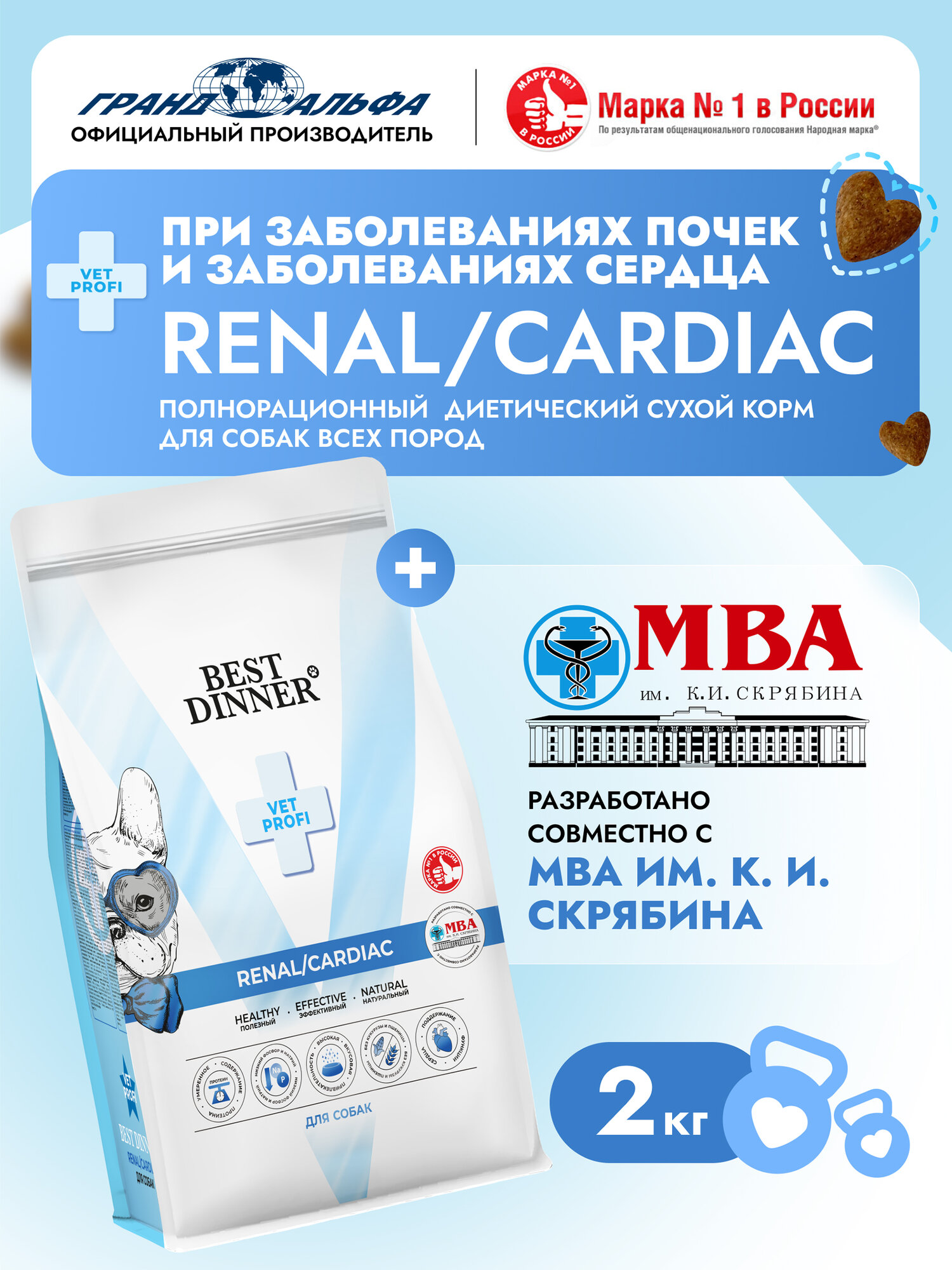 Корм сухой диетический супер премиум класса Vet Profi Renal/Cardiac для собак любых пород при болезни почек и заболеваниях сердца, 2 кг Best Dinner (Бест Диннер): сравнение цен, характеристики, фото, актуальное наличие и цены.