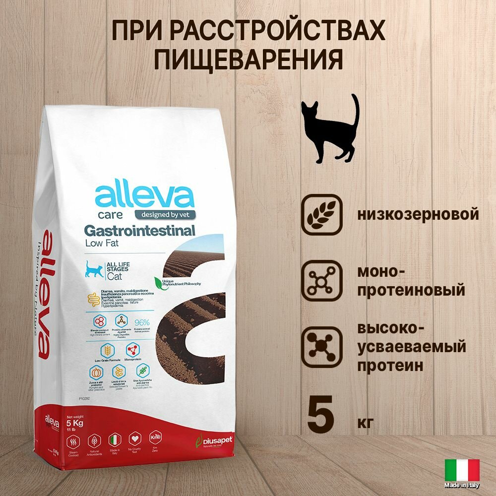 Корм сухой для кошек Alleva Care Adult Gastrointestinal Low Fat, при нарушениях пищеварения, 5 кг: сравнение цен, характеристики, фото, актуальное наличие и цены.