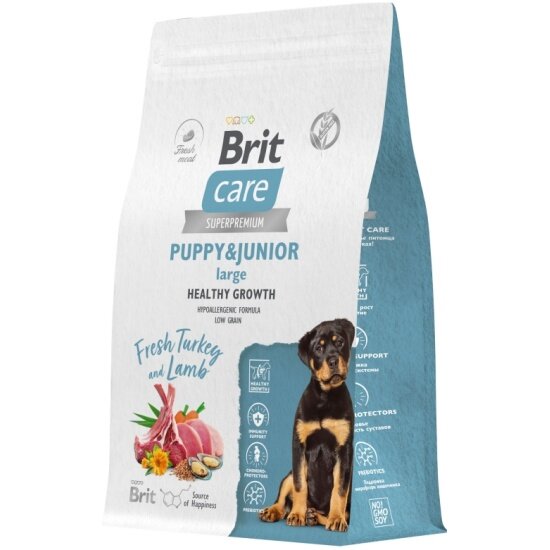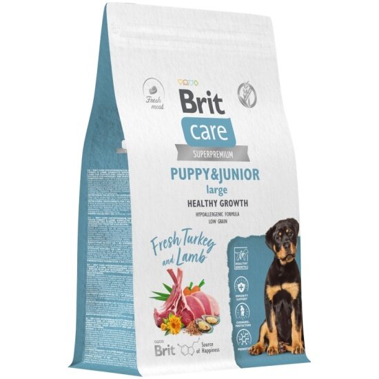 Полнорационный сухой корм суперпремиум-класса с индейкой и ягненком для щенков и молодых собак крупных пород. Здоровый рост и развитие. Подходит для беременных и кормящих собак.