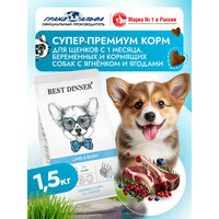 Корм сухой для щенков, кормящих и беременных собак мелких, средних и крупных пород супер премиум класса с ягненком и ягодами при чувствительном пищеварении, 1,5 кг Best Dinner (Бест Диннер)