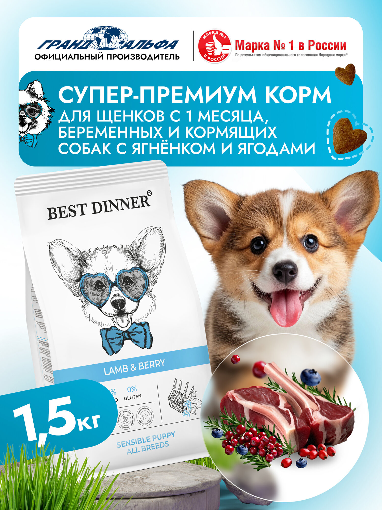 Корм сухой для щенков, кормящих и беременных собак мелких, средних и крупных пород супер премиум класса с ягненком и ягодами при чувствительном пищеварении, 1,5 кг Best Dinner (Бест Диннер): сравнение цен, характеристики, фото, актуальное наличие и цены.
