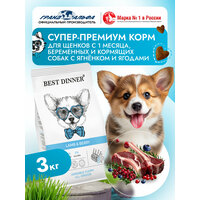 Корм сухой для щенков, кормящих и беременных собак мелких, средних и крупных пород супер премиум класса с ягненком и ягодами при чувствительном пищеварении, 3 кг Best Dinner (Бест Диннер)