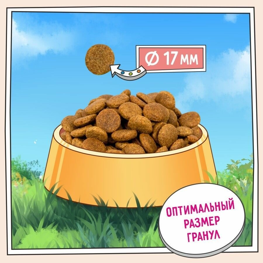 Гранулы корма специально созданы с учетом физиологических особенностей собак разных пород