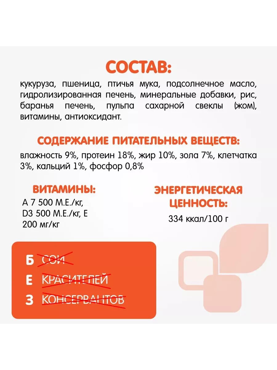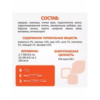 | Витамины | A 7 500 М.Е./кг, D3 500 М.Е./кг, Е 200 мг/кг |