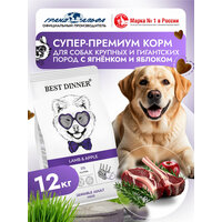 Корм сухой для собак крупных и гигантских пород супер премиум класса с ягненком и яблоками при чувствительном пищеварении, 12 кг Best Dinner (Бест Диннер)