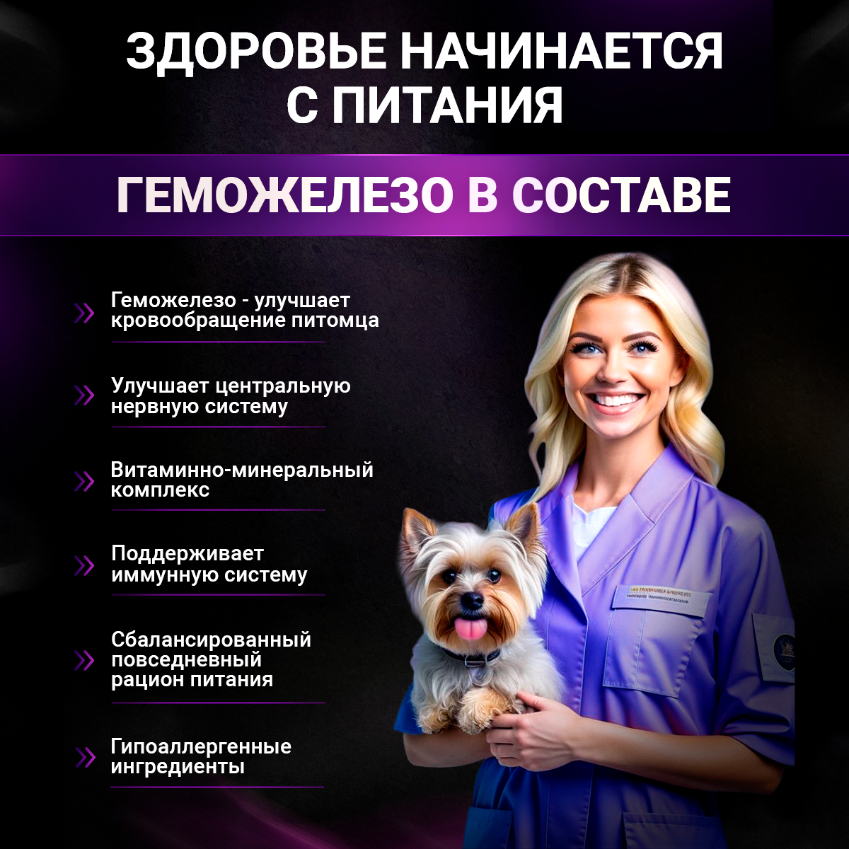 Наши сухие корма для минисобак обеспечат ваших самых преданных четвероногих друзей питательными веществами для здоровья и энергии. Корм для собак гипоаллергенный сухой, подходит для собак с аллергией. Подходит для собак с чувствительным пищеварением, для чувствительного желудка, а также для стерилизованных или кастрированных собак. Наш корм добавит в рацион вашего питомца только 100% натуральные элементы.