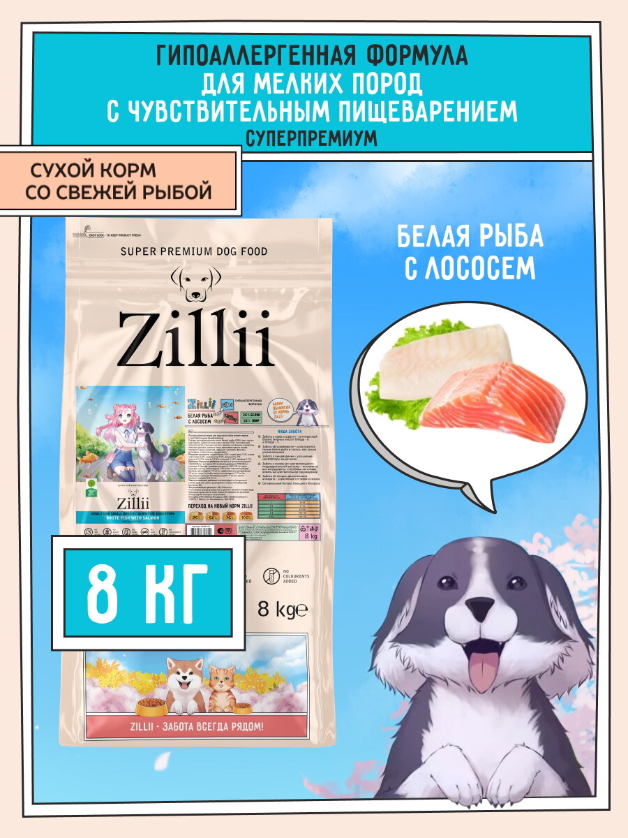 Купить Корм сухой для собак мелких пород с чувствительным пищеварением 8 кг, гипоаллергенный ZILLII (Зиллии), Белая Рыба/Лосось с доставкой по всей России. Корм сухой для собак мелких пород с чувствительным пищеварением 8 кг, гипоаллергенный ZILLII (Зиллии), Белая Рыба/Лосось: сравнение цен, характеристики, фото, актуальное наличие и цены.