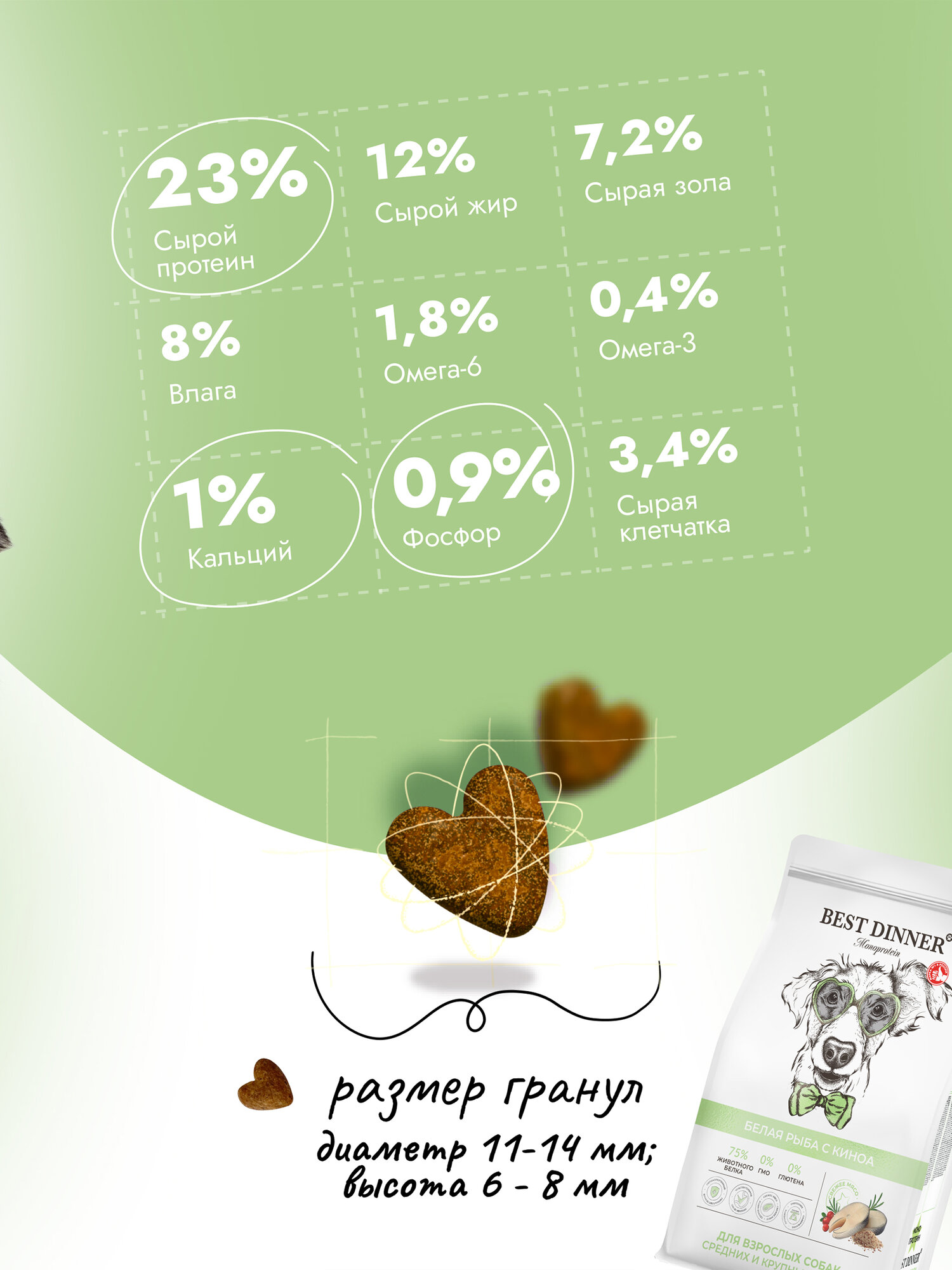 Корм сухой для собак средних и крупных пород супер премиум класса с белой рыбой и киноа при чувствительном пищеварении, 2 кг Best Dinner (Бест Диннер): сравнение цен, характеристики, фото, актуальное наличие и цены.
