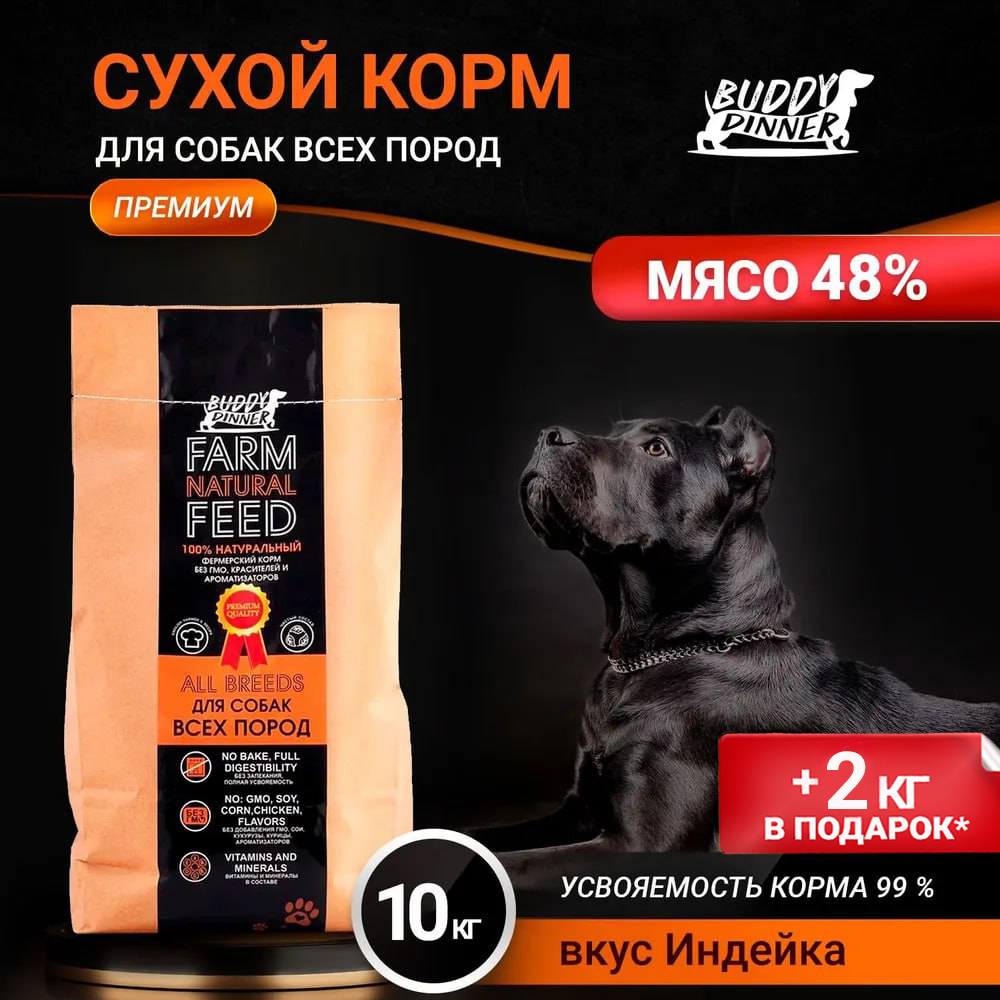 Корм сухой для собак всех пород BUDDY DINNER Премиум класса Orange Line, гипоаллергенный, 100% натуральный состав, с индейкой, 10 + 2 кг в подарок: сравнение цен, характеристики, фото, актуальное наличие и цены.