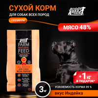 Купить Корм сухой для собак всех пород BUDDY DINNER Премиум класса Orange Line, гипоаллергенный, 100% натуральный состав, с индейкой, 3 кг + 1 кг в подарок с доставкой по всей России.