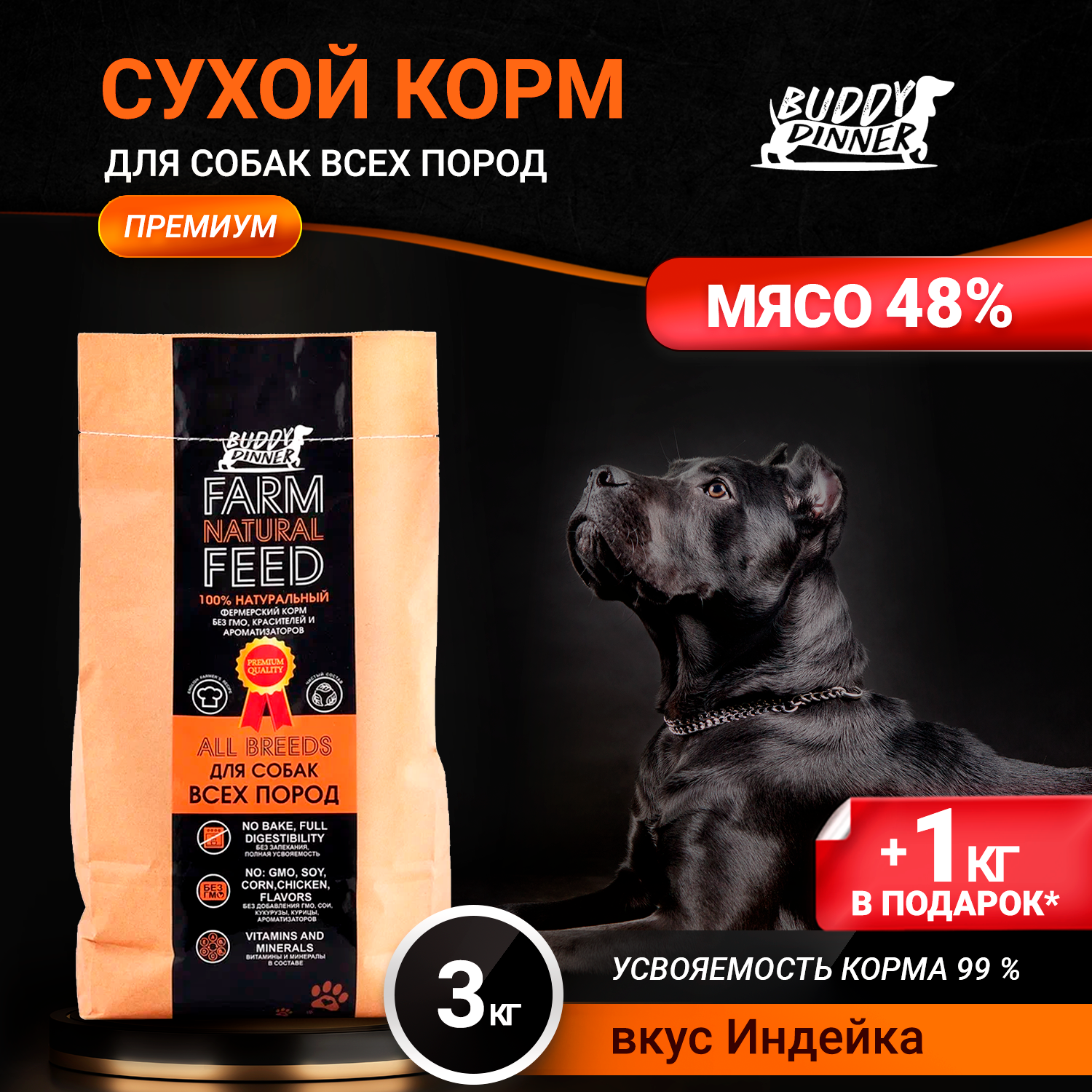 Корм сухой для собак всех пород BUDDY DINNER Премиум класса Orange Line, гипоаллергенный, 100% натуральный состав, с индейкой, 3 кг + 1 кг в подарок: сравнение цен, характеристики, фото, актуальное наличие и цены.