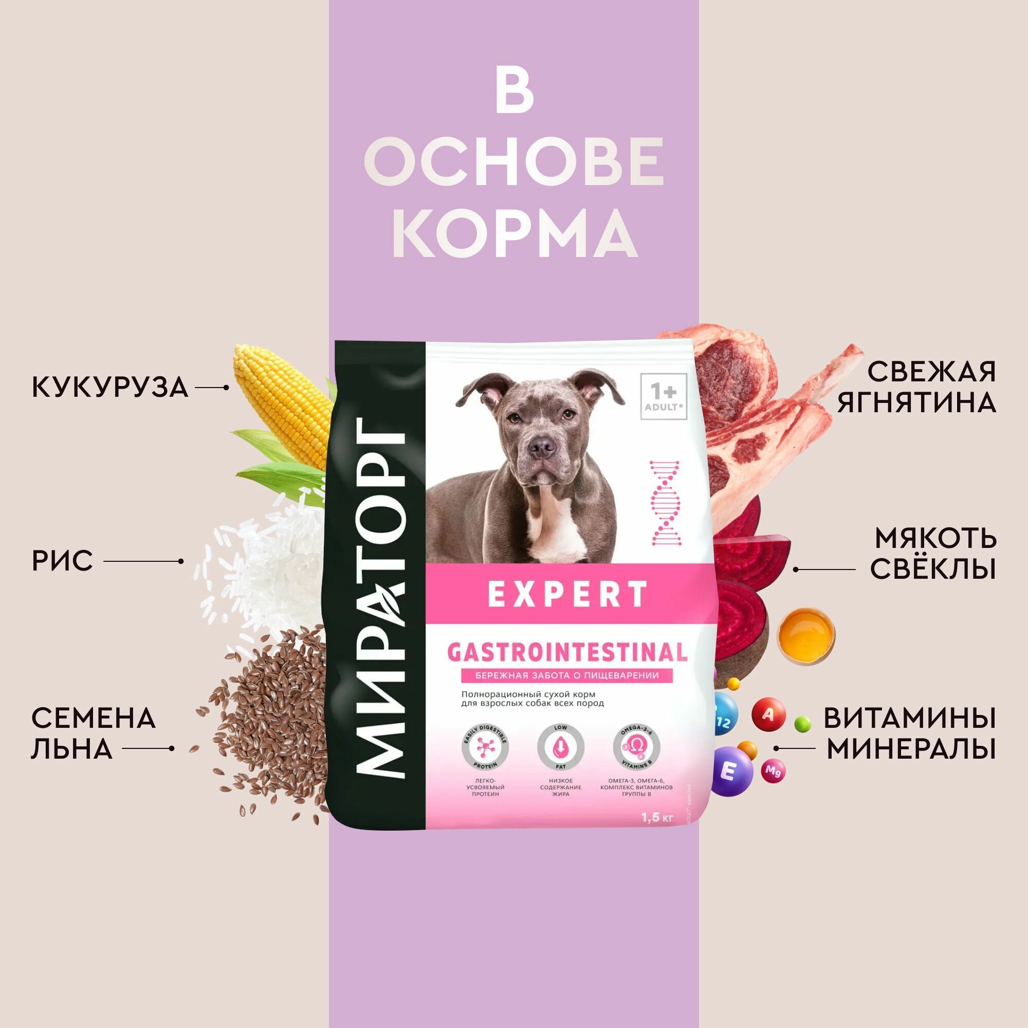 Купить Корм сухой для взрослых собак Мираторг Expert Gastrointestina Бережная забота о пищеварении, с ягненком, 1,5 кг с доставкой по всей России. Корм сухой для взрослых собак Мираторг Expert Gastrointestina Бережная забота о пищеварении, с ягненком, 1,5 кг: сравнение цен, характеристики, фото, актуальное наличие и цены.