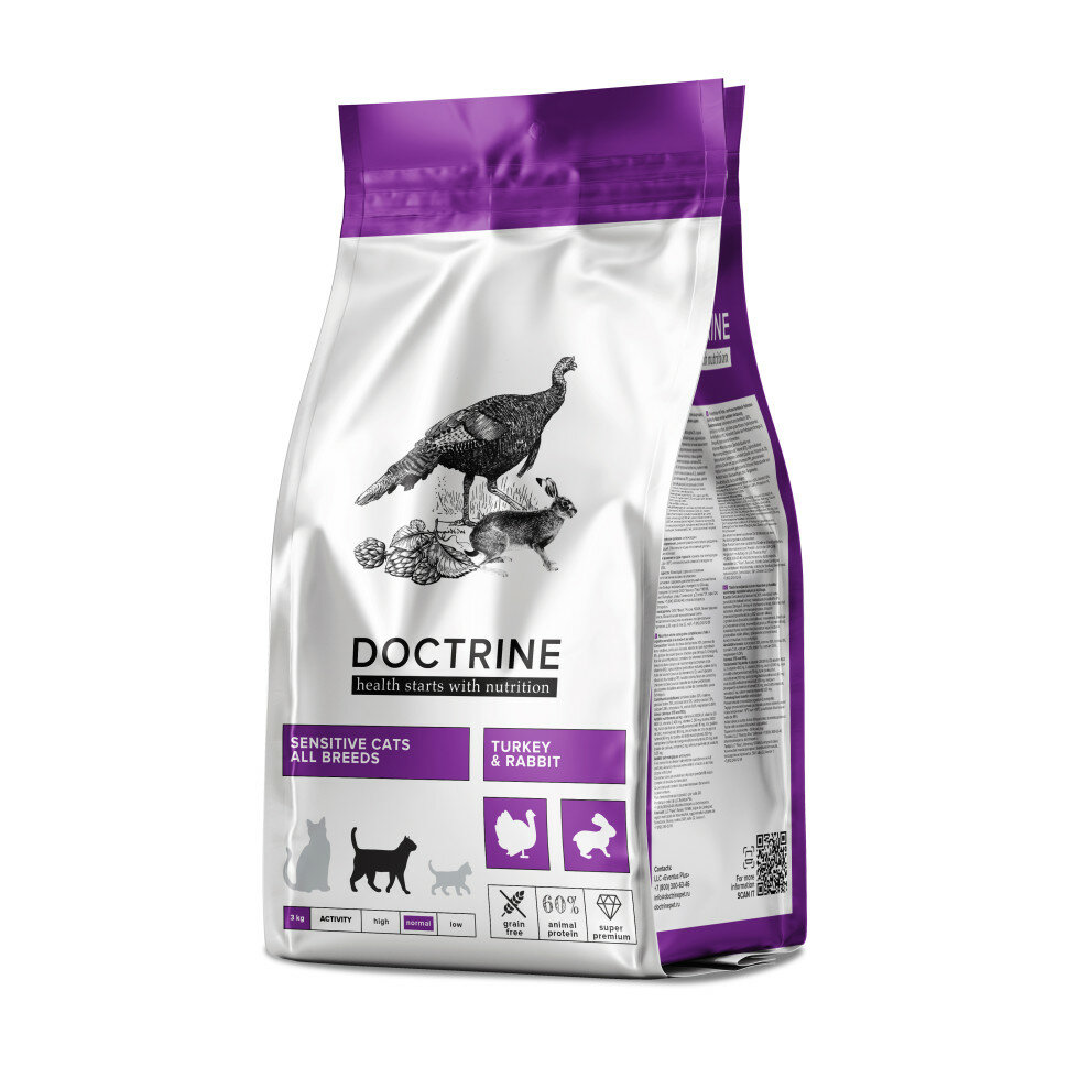 Doctrine сухой беззерновой корм для кошек и котов с чувствительным пищеварением с индейкой и кроликом — 3 кг: сравнение цен, характеристики, фото, актуальное наличие и цены.