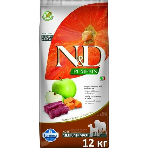 Купить Корм сухой Farmina N&D Dog Pumpkin с олениной, яблоком и тыквой беззерновой для собак средних и крупных пород 12кг с доставкой по всей России. Корм сухой Farmina N&D Dog Pumpkin с олениной, яблоком и тыквой беззерновой для собак средних и крупных пород 12кг: сравнение цен, характеристики, фото, актуальное наличие и цены.