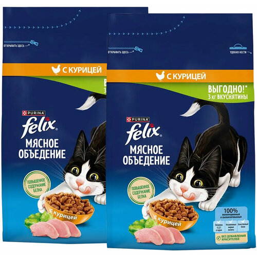 Купить Корм сухой Felix Мясное Объедение для взрослых кошек, курица, 3 кг x 2 шт с доставкой по всей России.