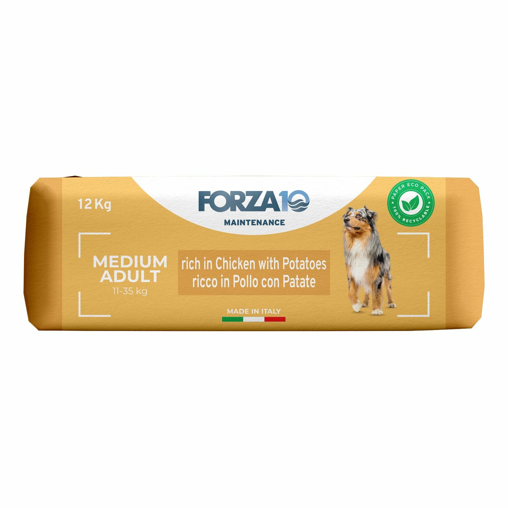 Корм сухой Forza10 «Maintenance», для взрослых собак средних и крупных пород, с курицей с картофелем, 12 кг: сравнение цен, характеристики, фото, актуальное наличие и цены.