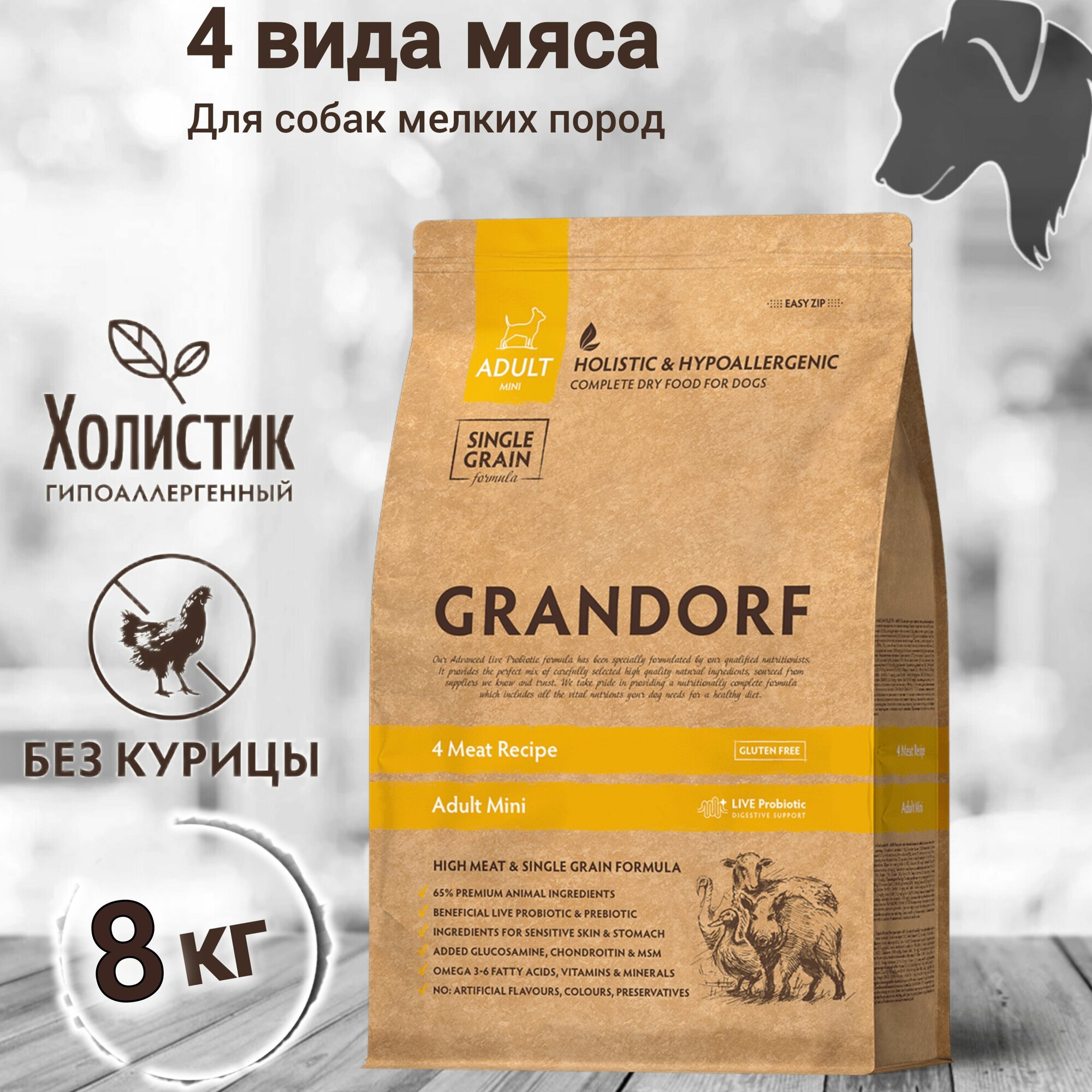 Купить Корм сухой GRANDORF 4 Мяса для собак мини пород от 1 года 8кг. С пробиотиками, гипоаллергенный. с доставкой по всей России. Корм сухой GRANDORF 4 Мяса для собак мини пород от 1 года 8кг. С пробиотиками, гипоаллергенный.: сравнение цен, характеристики, фото, актуальное наличие и цены.