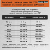 Запеченный сухой корм для щенков Acari Ciar A Baked Junior с цесаркой и олениной - это сбалансированный и полнорационный корм класса холистик, созданный на основе рекомендаций ведущих ветеринарных врачей, кинологов и заводчиков России.